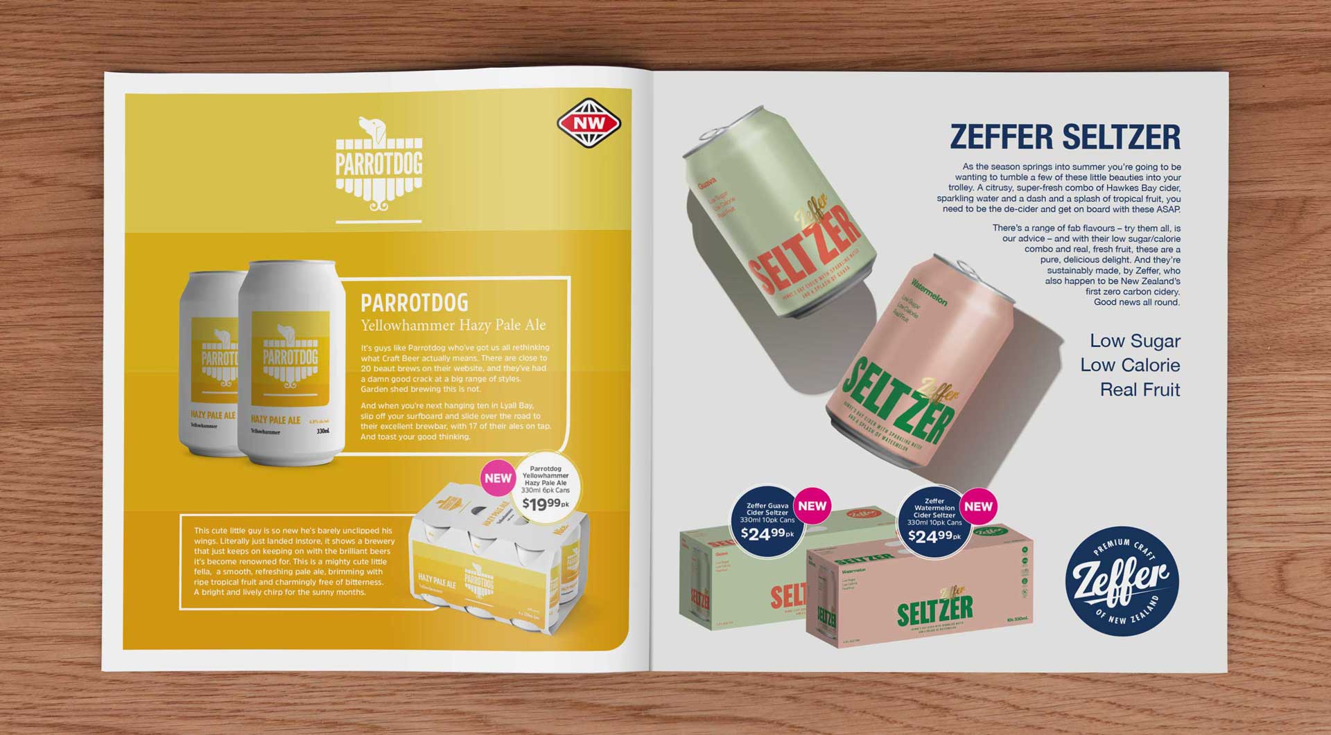 Our carefully crafted New World alcohol catalogues show a fresh and contemporary aesthetic while retaining a sense of familiarity. Each spread is themed to highlight distinct alcohol categories, enhanced by a versatile design that adapts to varying product displays.